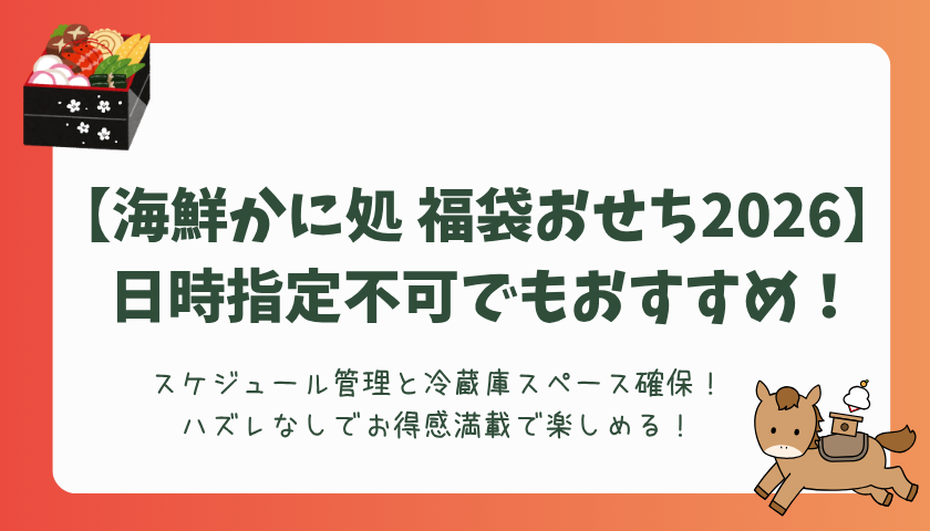 。『海鮮かに処 おせち福袋2026』は、サプライズ感と冷蔵到着の扱いやすさが魅力で、イベント性×コスパを求めるご家庭にぴったり。